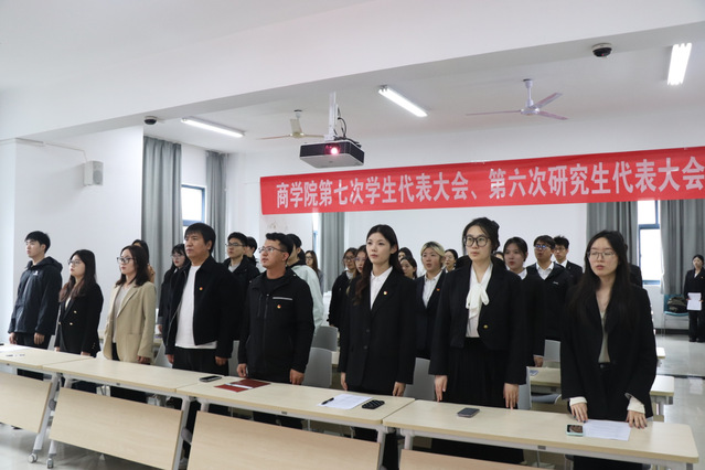 11月6日,商学院召开第七次学生代表大会、第六次研究生代表大会。学院团委书记樊宏、研究生辅导员杨飞以及50名本科生、研究生代表参会。本次大会由任佳琦同学主持。