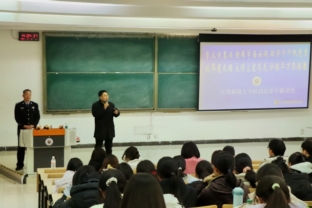 为提升同学们防范电信网络诈骗的意识,筑牢校园安全防线,商学院于12月10日14:00在教#42阶101教室举办反诈宣传讲座。本次讲座由我校警务室驻校民警周广文警长主讲,2025级全体新生参加讲座。