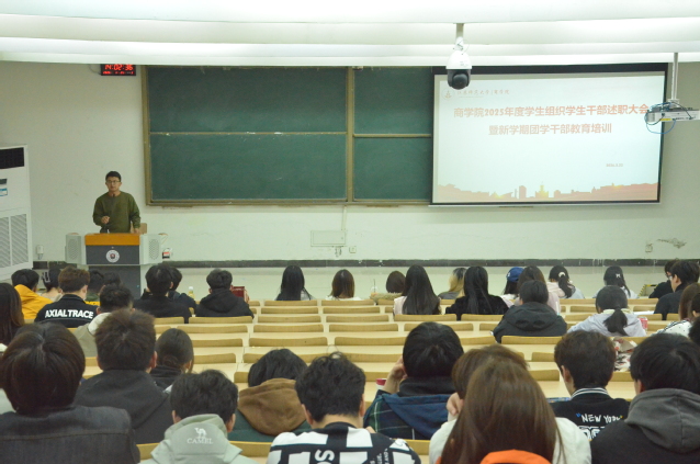 3月25日,商学院在教42#阶101教室召开2025年度团学干部述职大会暨新学期团学干部教育培训,全面总结上学期团学工作成效,部署新学期工作任务,为团学干部开展专题教育培训。